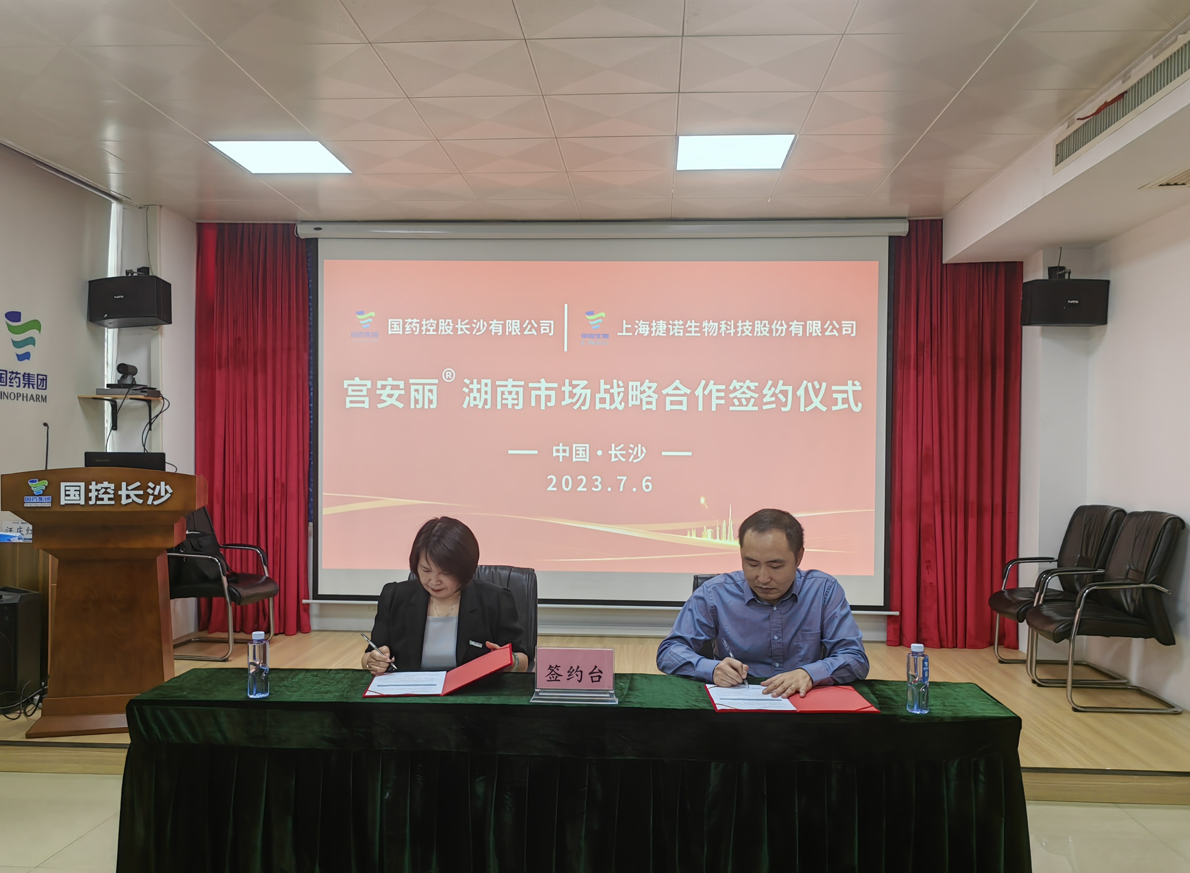 7月6日,,,,国药集团中国生物上海尊龙时凯生物科技有限公司(简称“国药中生上海尊龙时凯”)与国药控股长沙有限公司(简称“国控长沙”)签署战略合作协议。。国药中生上海尊龙时凯销售总监杨嘉伟、、、、国控长沙健康事业部负责人李玲为战略协议书签字,,国控长沙销售总监祖柯等领导出席签约仪式。。。。