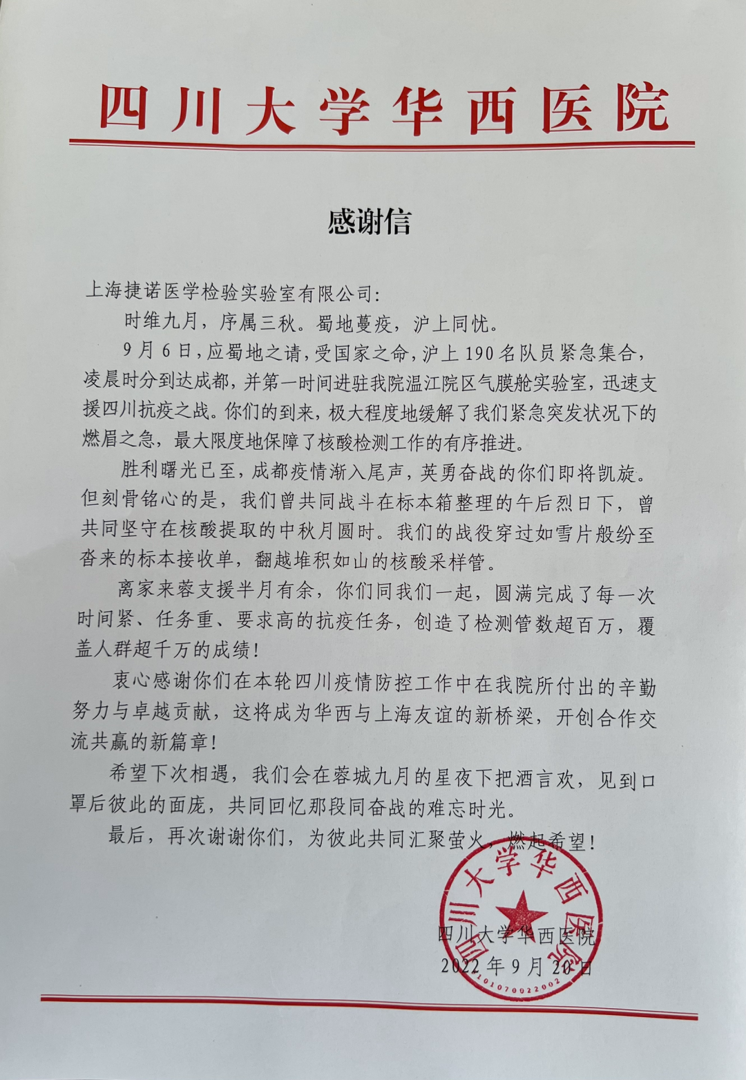 沪蓉有情 守望相助 上海尊龙时凯援川核酸检测队凯旋归来